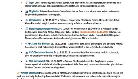 Unser 1. Newsletter hat die Saison 2025/2026 eröffnet